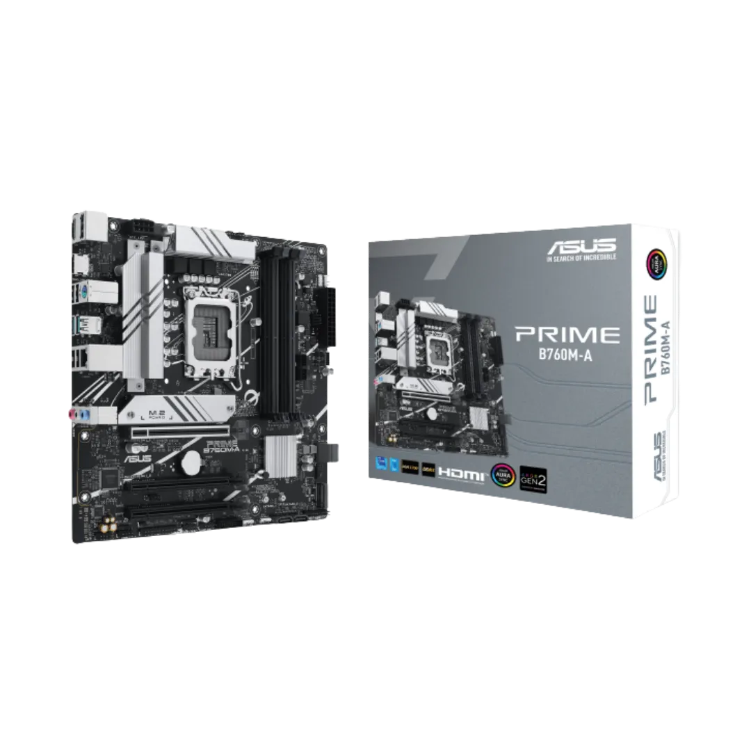ASUS PRIME B760M-A Intel B760(LGA1700)(13th and 12th Gen)mATX motherboard,PCIe 4.0,DDR5, 2xM.2 slots,2.5Gb LAN, DP, Dual HDMI®, SATA 6 Gbps, rear USB 3.2 Gen 2, front USB 3.2 Gen 1 Type-C®, Aura Sync
