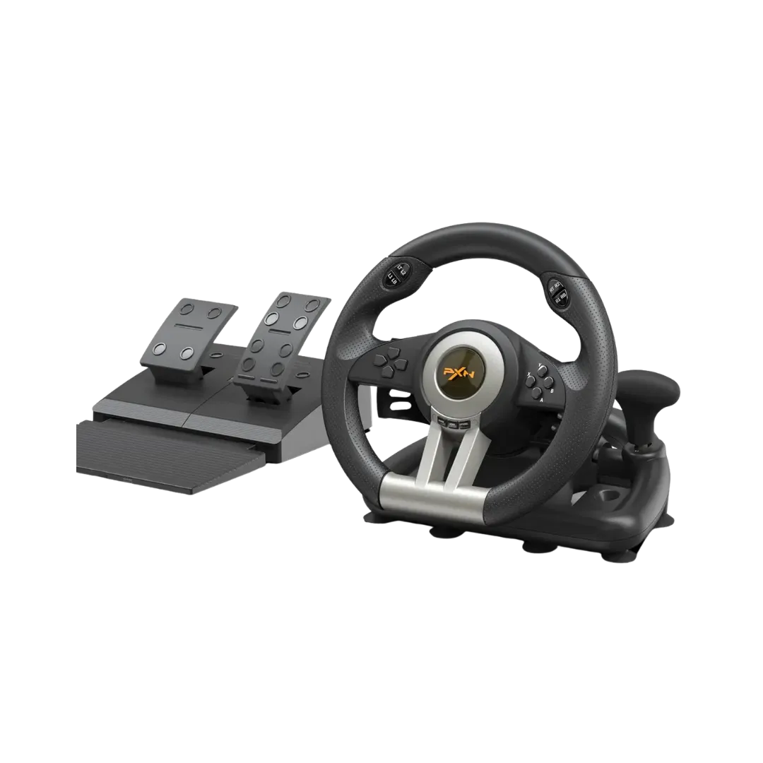 Step into the driver’s seat with the PXN V3 Pro, crafted to replicate the feel of a real car steering wheel. With a 180-degree rotation range, advanced force-feedback technology, and textured grip for comfort during extended gaming sessions, this wheel offers unmatched realism. The responsive pedal set allows for precision acceleration and braking, giving you complete control to dominate tight corners and challenging tracks. Compatible with multiple setups, it fits perfectly into your gaming space while delivering steady, reliable performance.