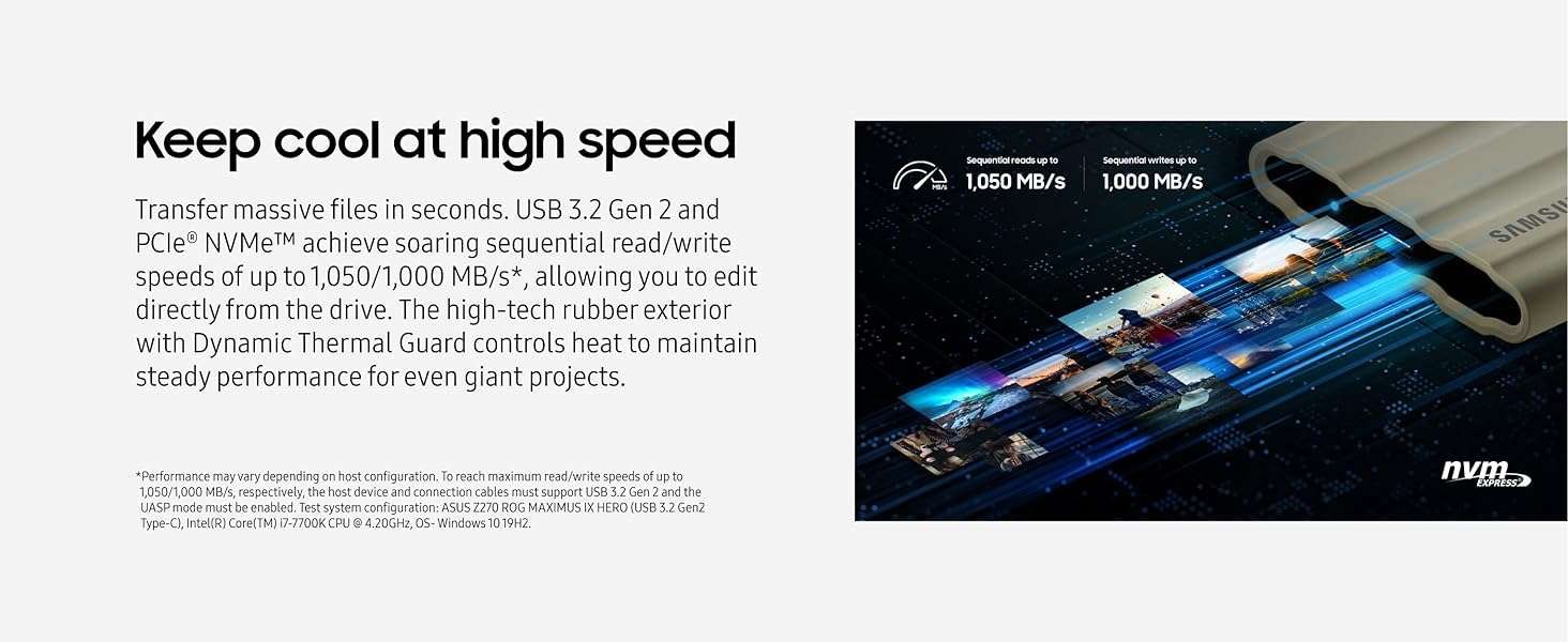 - Uses USB 3.2 Gen 2 (10Gbps) interface.