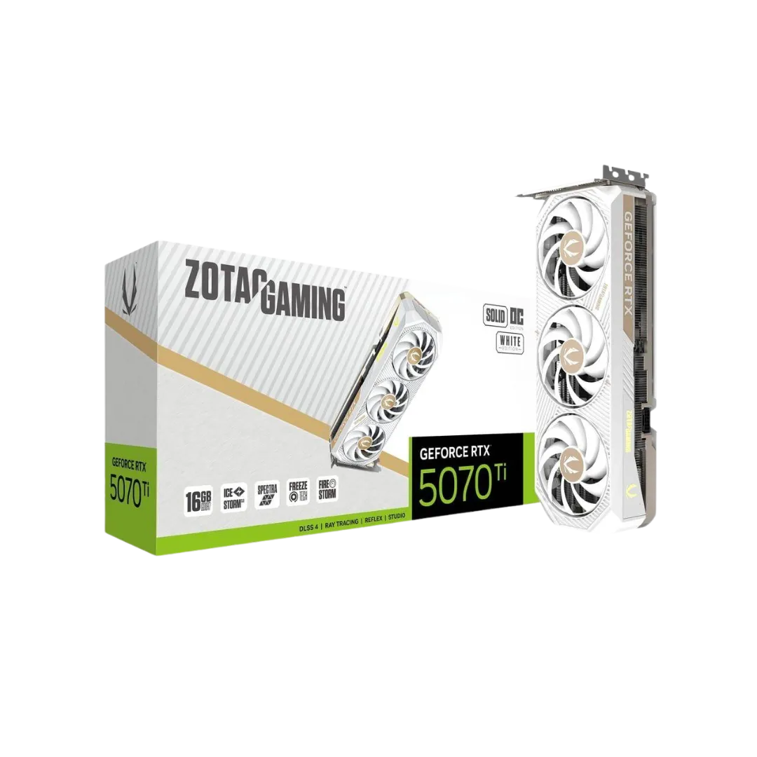 The ZOTAC GAMING GeForce RTX 5070 Ti SOLID OC 16GB White Graphics Card is designed to deliver next-generation performance for gamers, creators, and professionals. Built on NVIDIA’s advanced RTX architecture, it combines powerful graphics processing, AI acceleration, and cutting-edge rendering technologies to handle modern gaming and demanding creative workloads with ease.