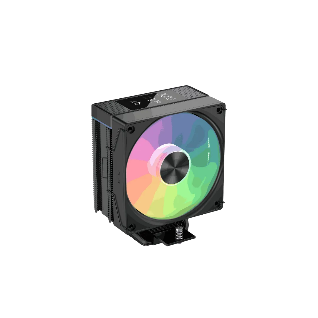 A built-in digital display on the top of the cooler provides real-time temperature or system information, allowing users to monitor performance at a glance without additional software or tools.