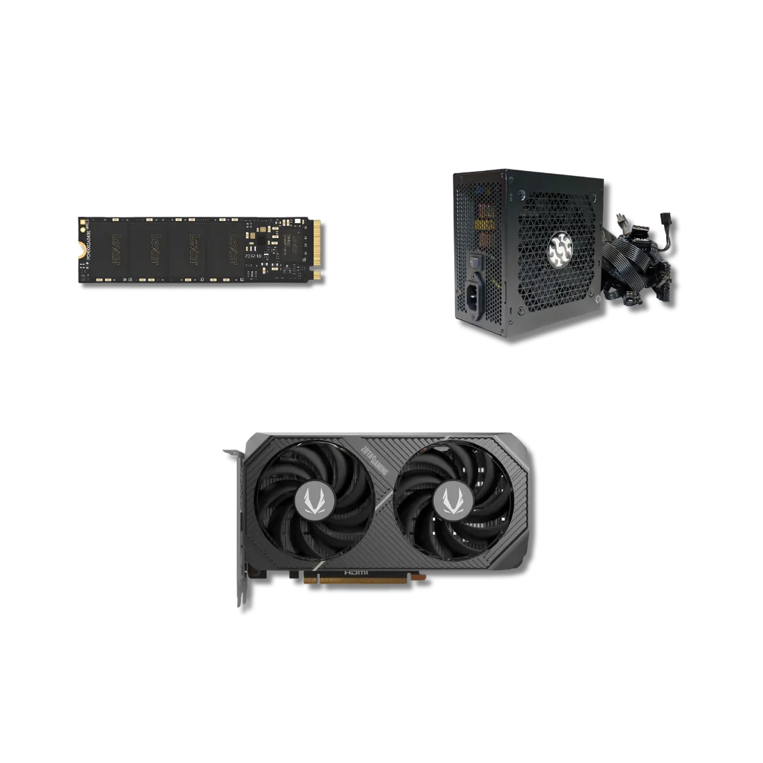 | Graphics Card -> | RTX 5060 Dual Fan (Zotac/Gigabyte) / AMD RX 9060 XT 8GB | – New |