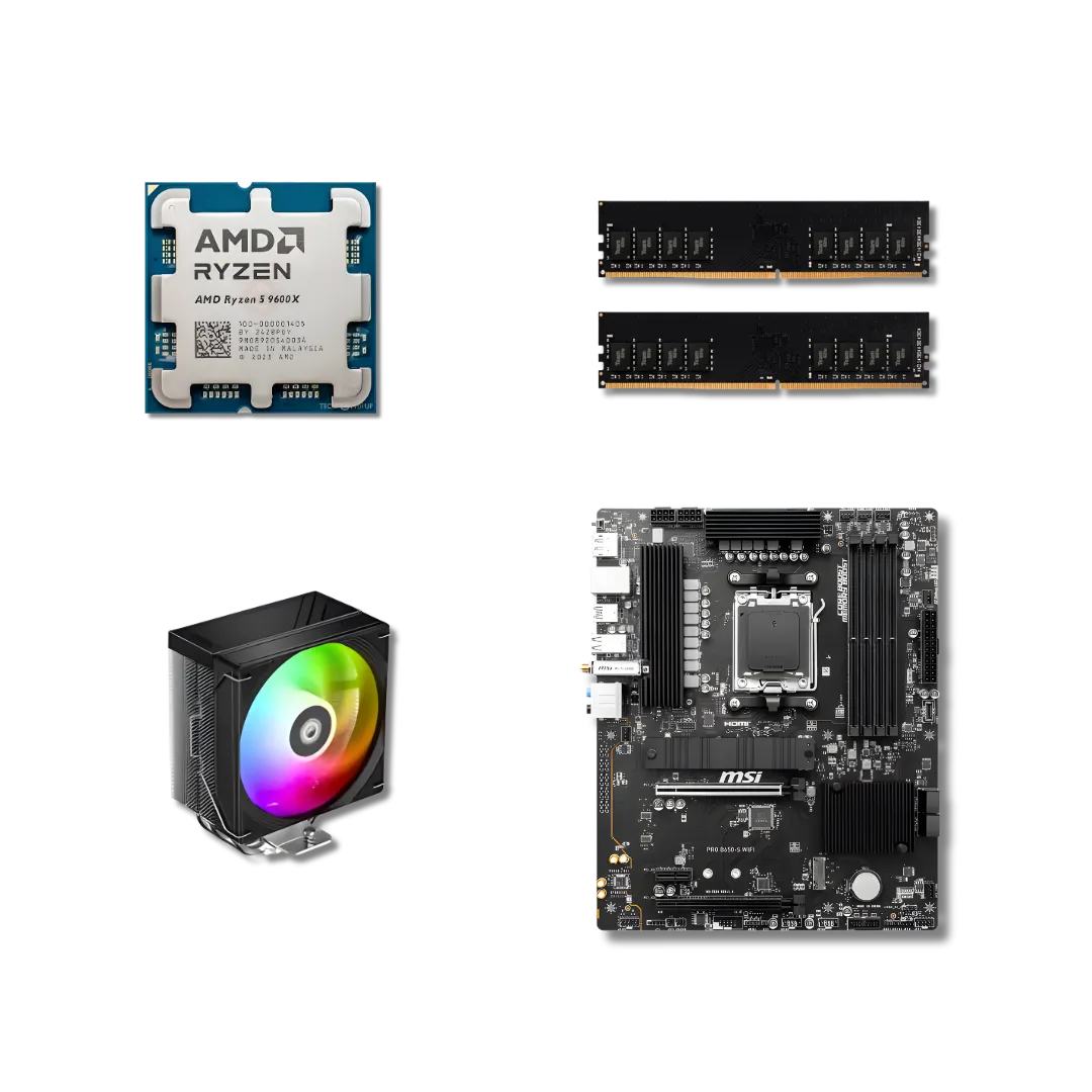 Buy Ryzen 5 9600X with RTX 5080 16GB in Pakistan. Keep your gaming experience running smoothly with this latest budget build. This is a complete Ryzen 5 9600X Gaming Build with RTX 5080 16GB for those who want the latest specs without breaking the bank. Ryzen 5 9600X 0f gaming build – with the latest RTX 5080 16GB GPU, RAM, and CPU – is the newest budget build on the market. You’ll enjoy high-quality graphics and a smooth gameplay experience with everyday use.